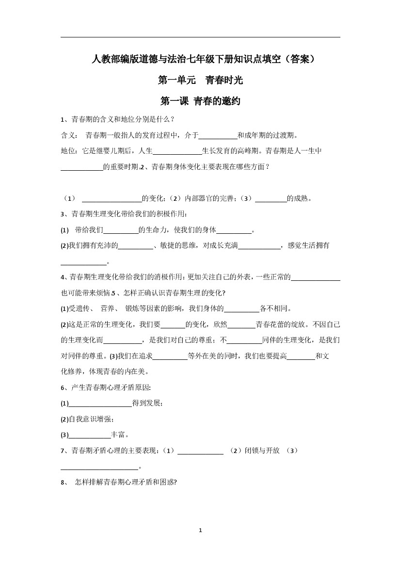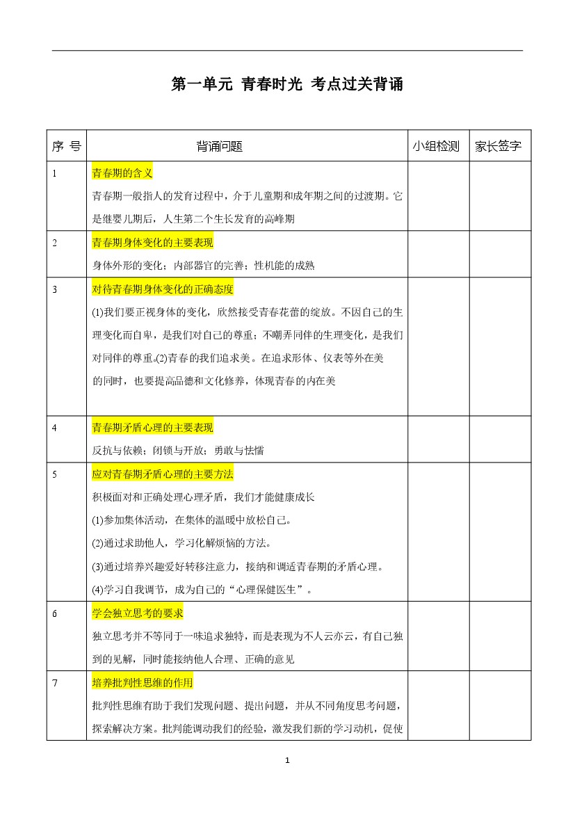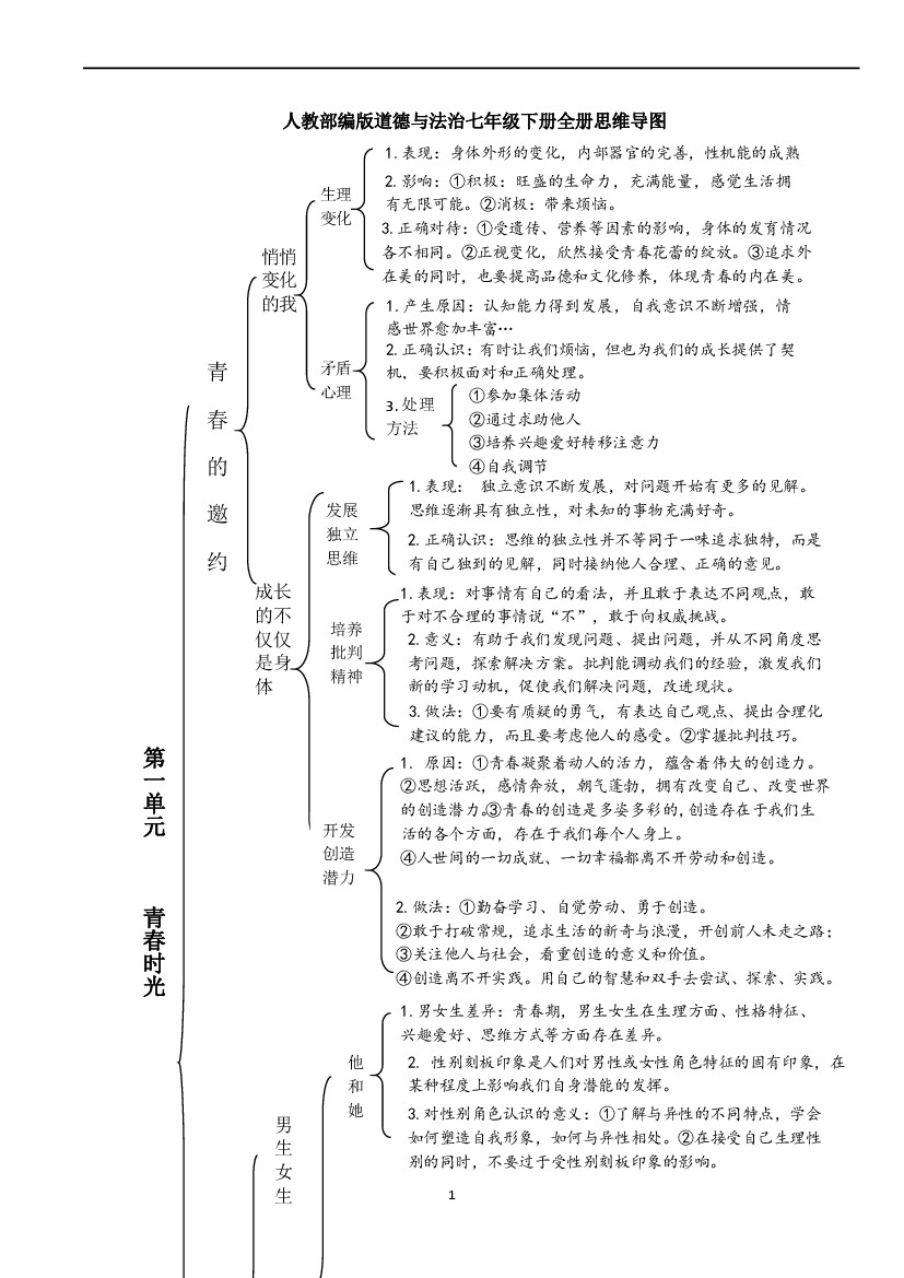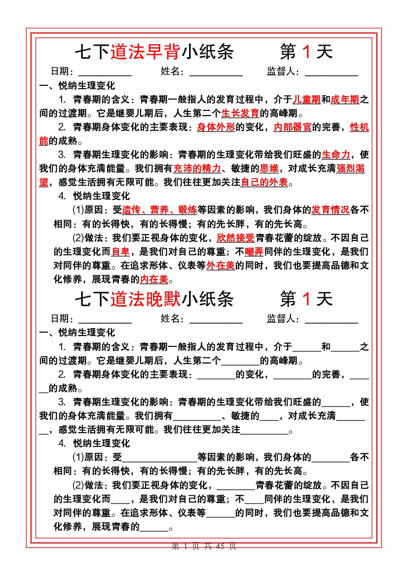 【2025春新版】七下道法知识点寒假预习早背晚默