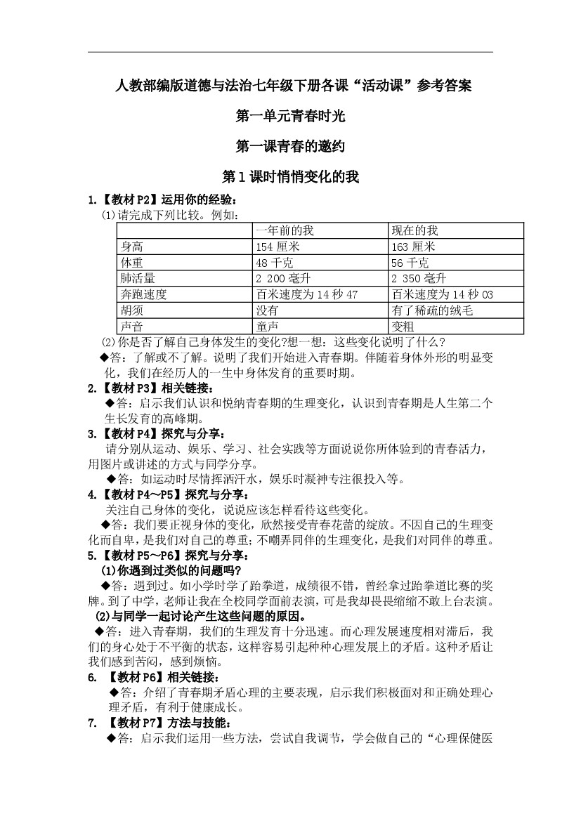 2025年七下道法第一次月考试卷7下道法第1次月考01【第1单元】