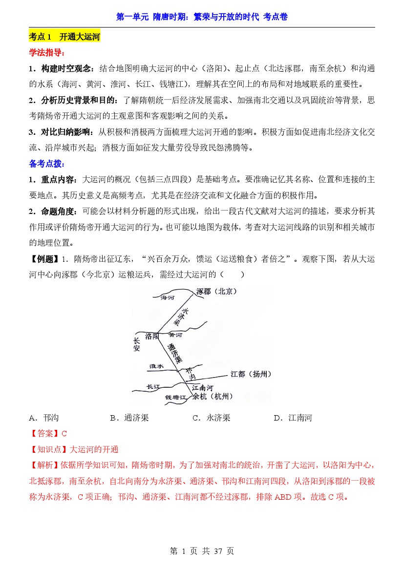 2025年【七下历史】单元测试卷第1单元隋唐时期(考点卷)