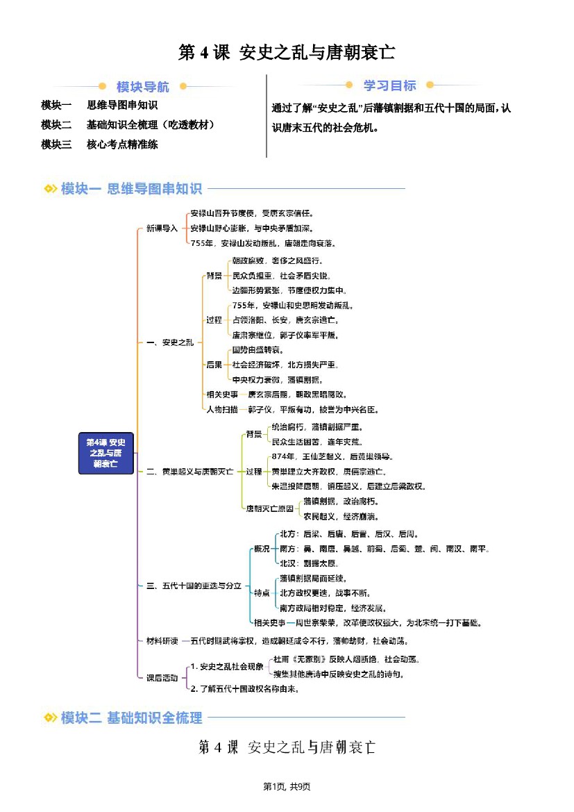【七下历史】新七下第4课安史之乱与唐朝衰亡(原卷版)