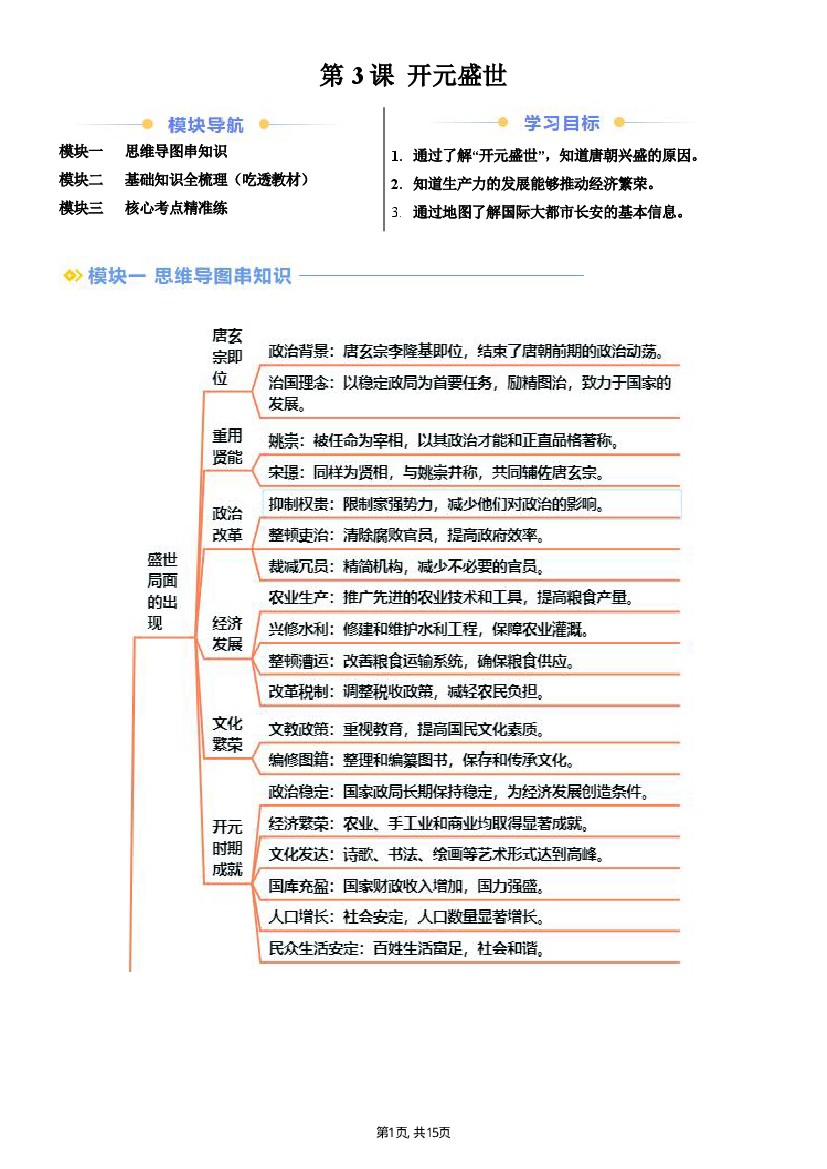 【七下历史】新七下第3课开元盛世(解析版)