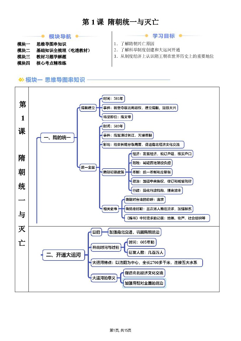 【七下历史】新七下第1课隋朝统一与灭亡(解析版)