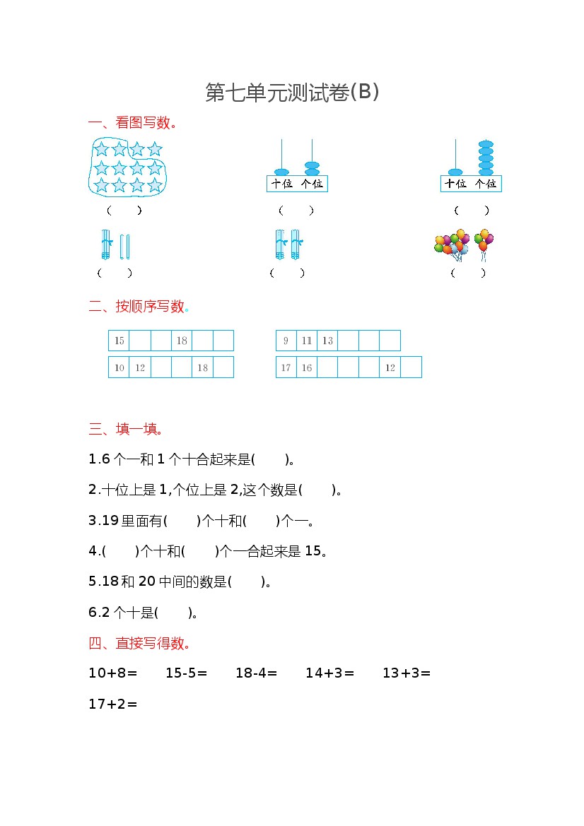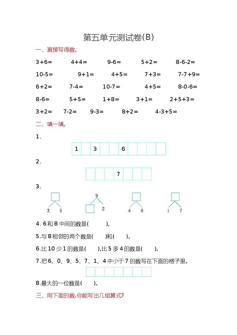 一上数学(北京版)(10)--第5单元测试卷(B)