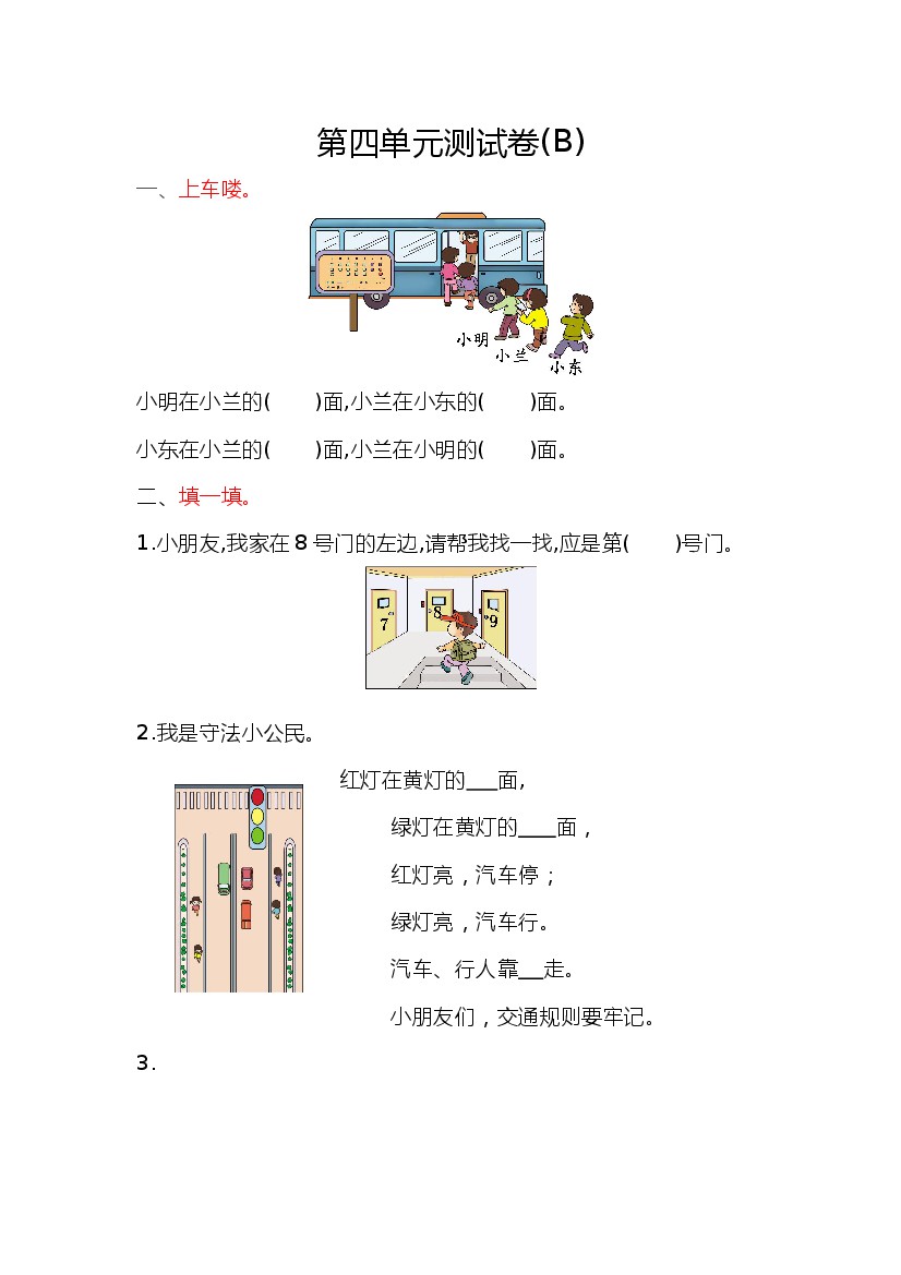 一上数学(北京版)(6)--第3单元测试卷(B)