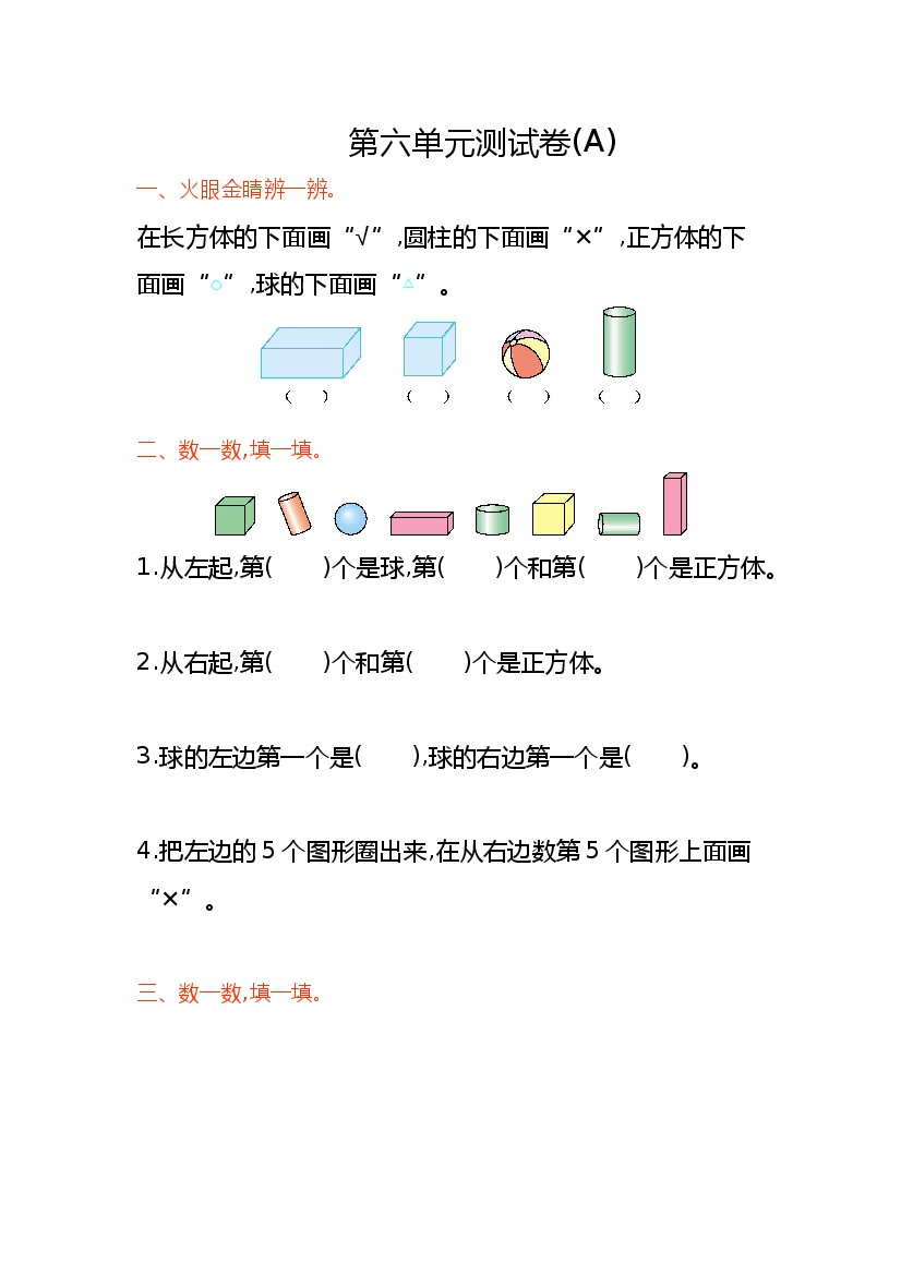 一上数学(北京版)(11)--第6单元测试卷(A)