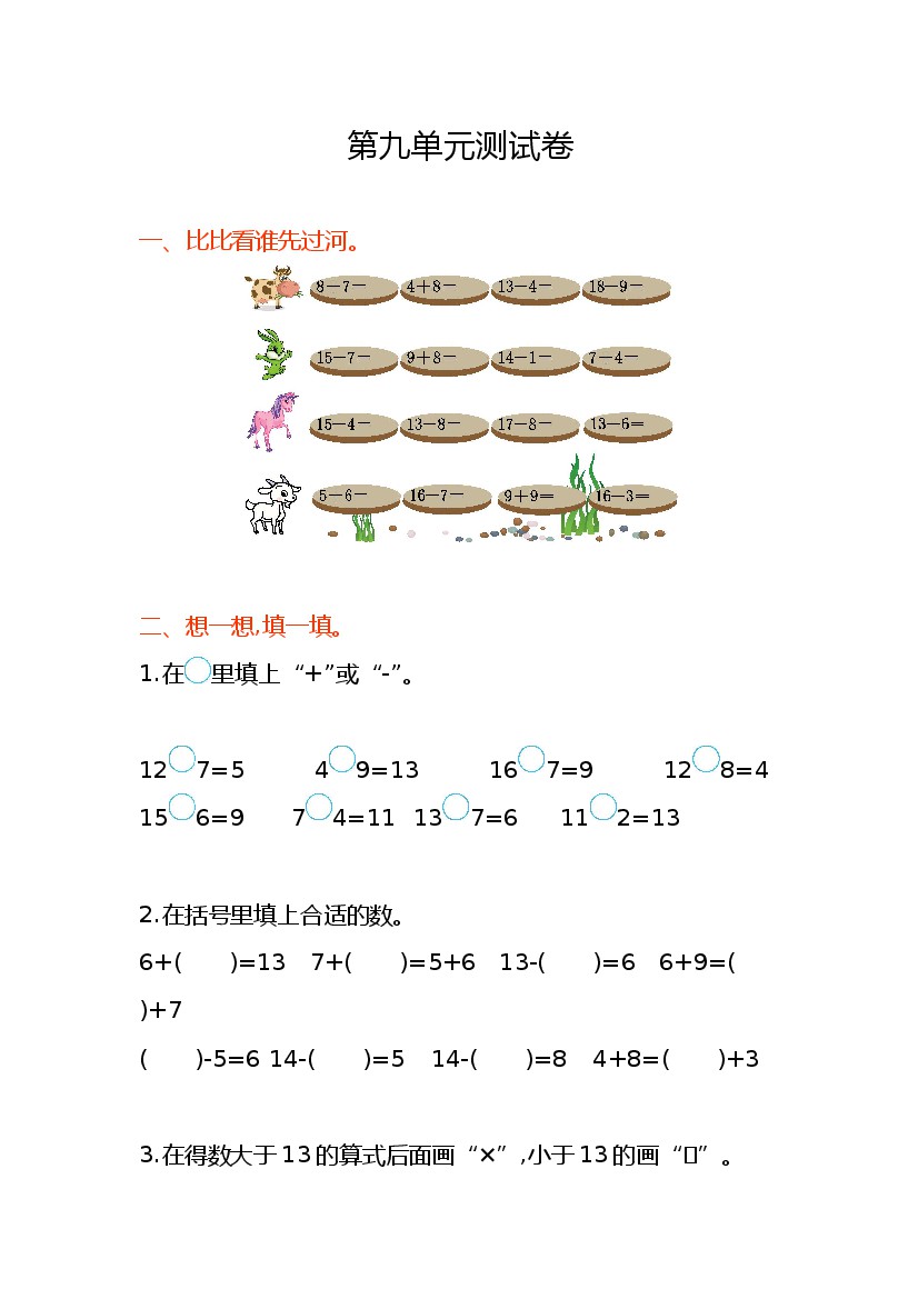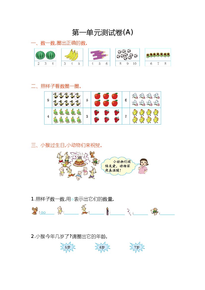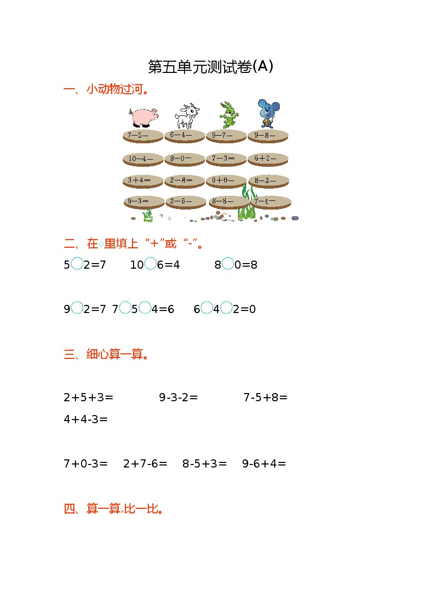 一上数学(北京版)(9)--第5单元测试卷(A)