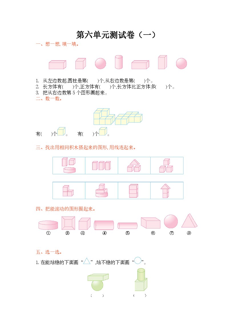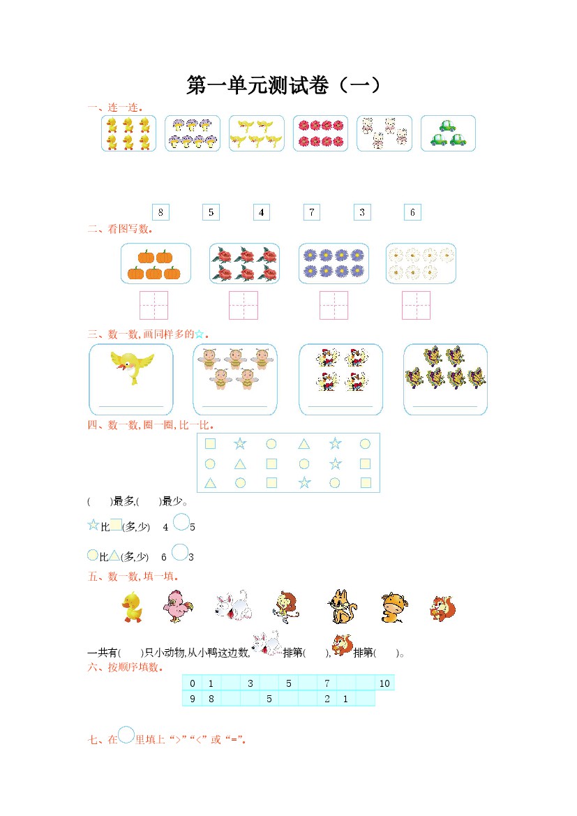 25年一上数学【北师版】(12)--第6单元测试卷(一)