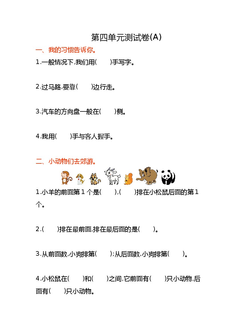 一上数学(北京版)(7)--第4单元测试卷(A)