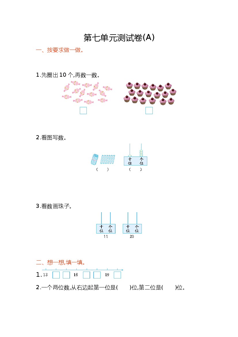 一上数学(北京版)(13)--第7单元测试卷(A)