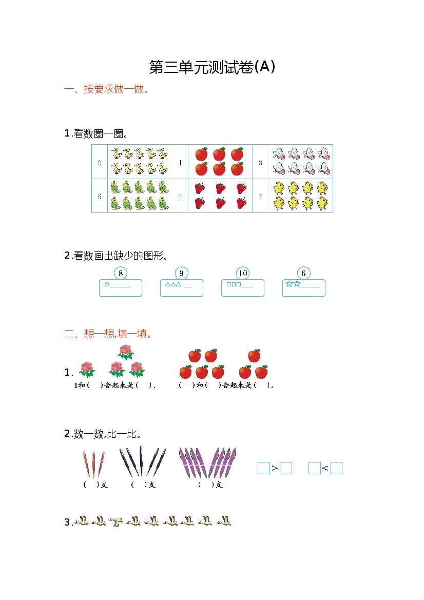 一上数学(北京版)(5)--第3单元测试卷(A)