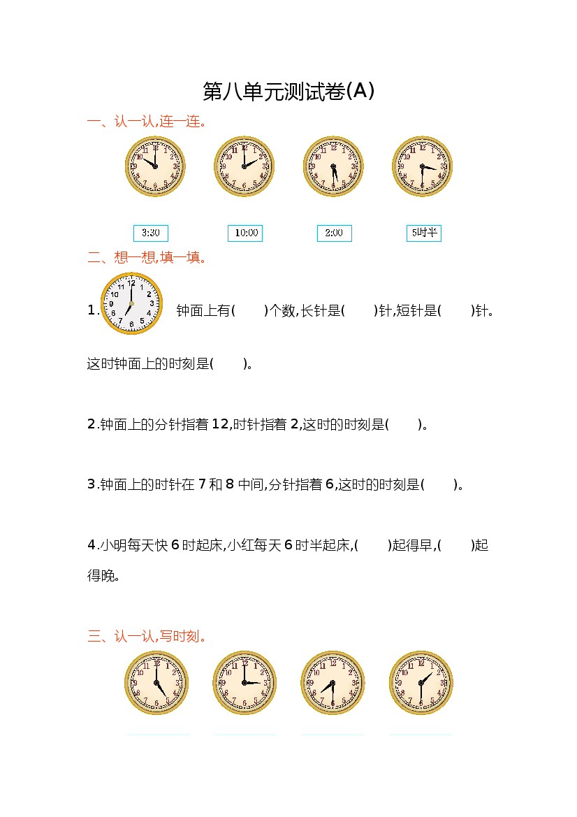 一上数学(北京版)(15)--第8单元测试卷(A)