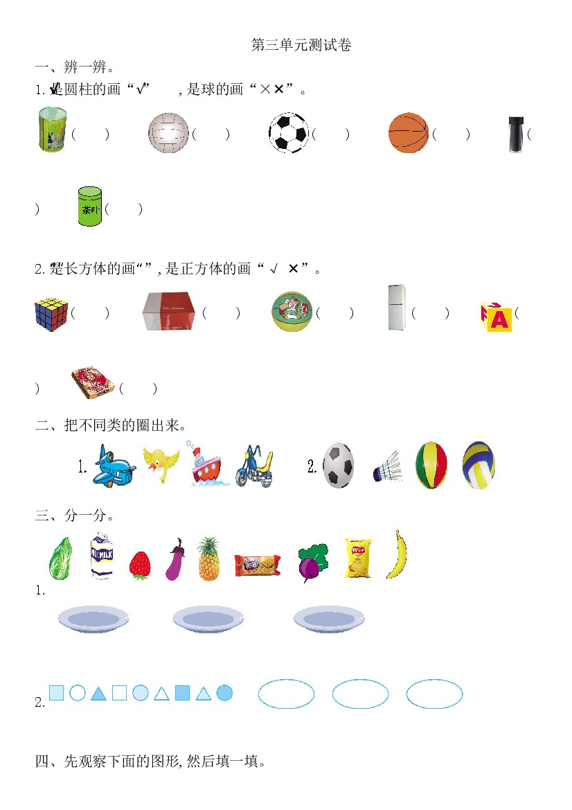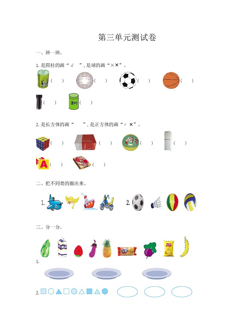 一上数学(西师版)一(上)西师版数学第三单元检测卷_1