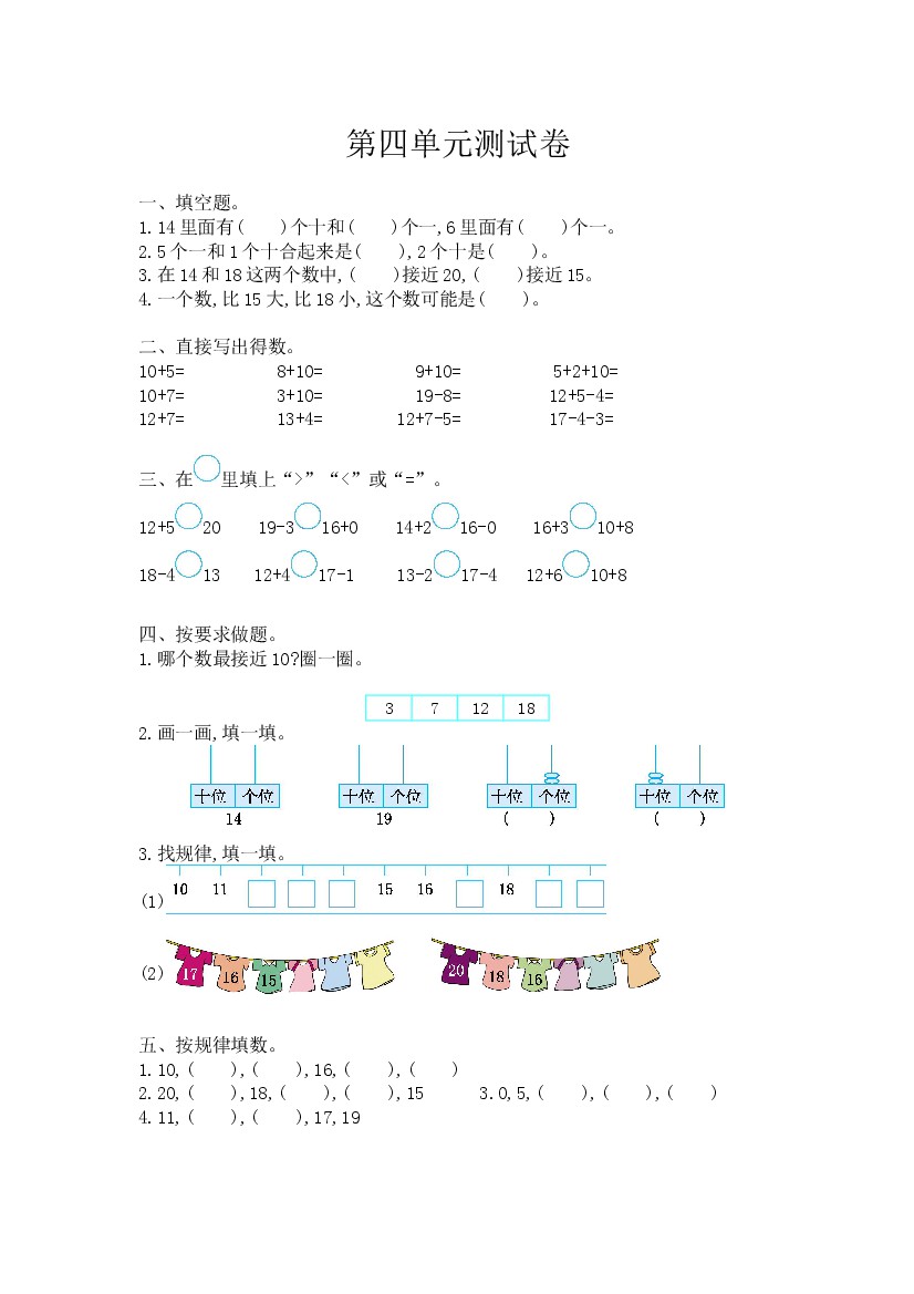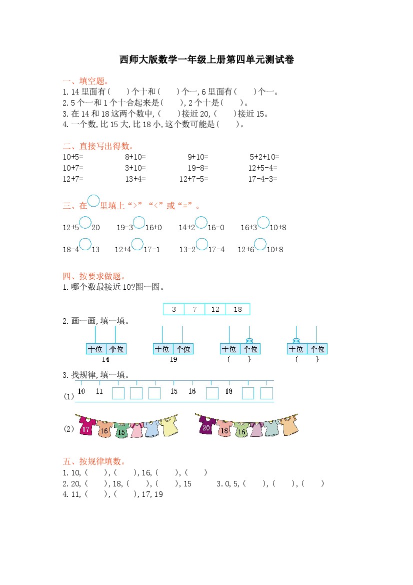 一上数学(西师版)一(上)西师版数学第四单元测试卷