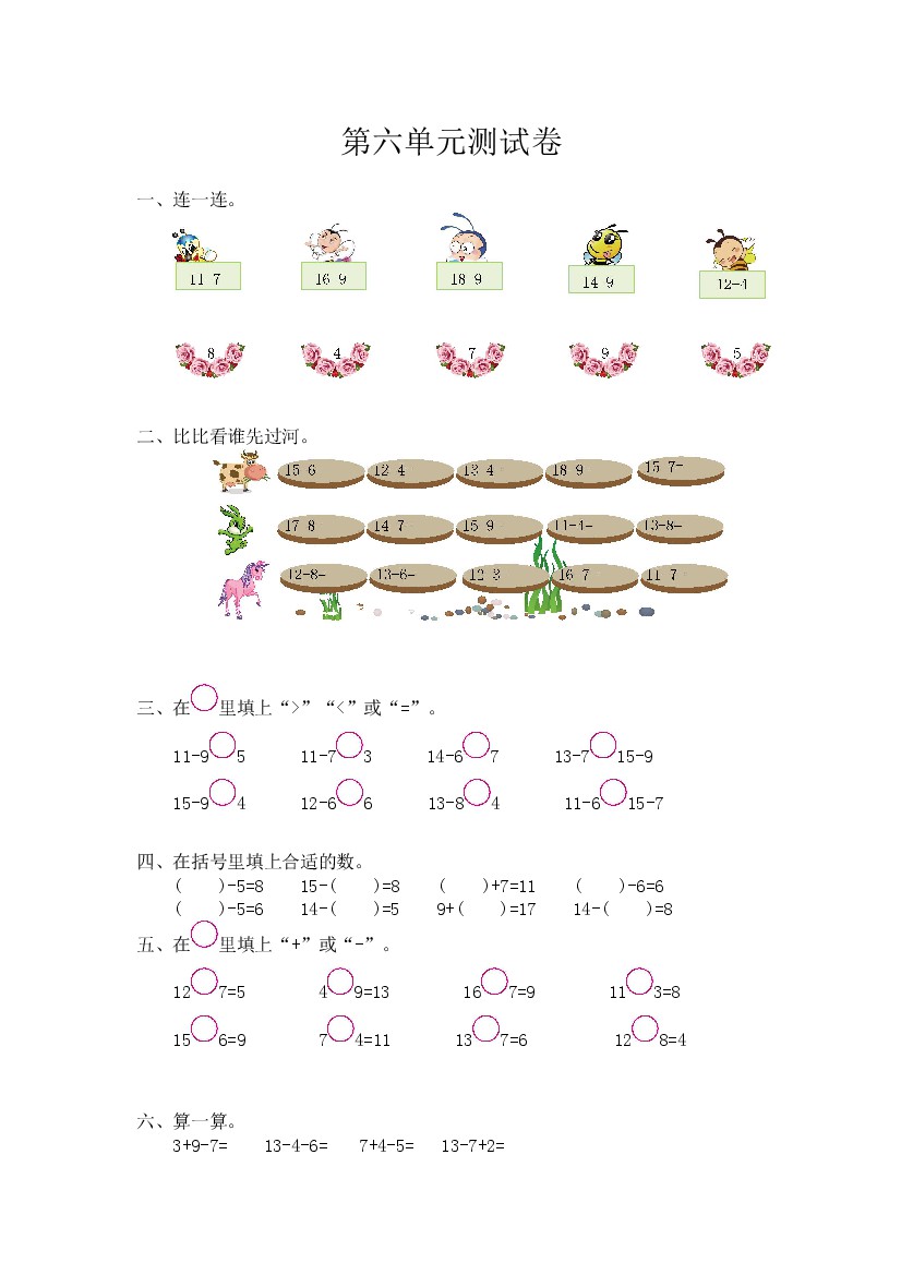 一上数学(西师版)一(上)西师版数学第六单元测试卷