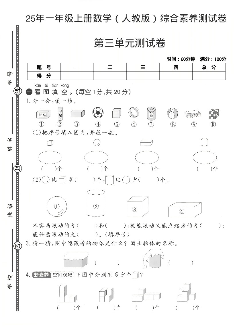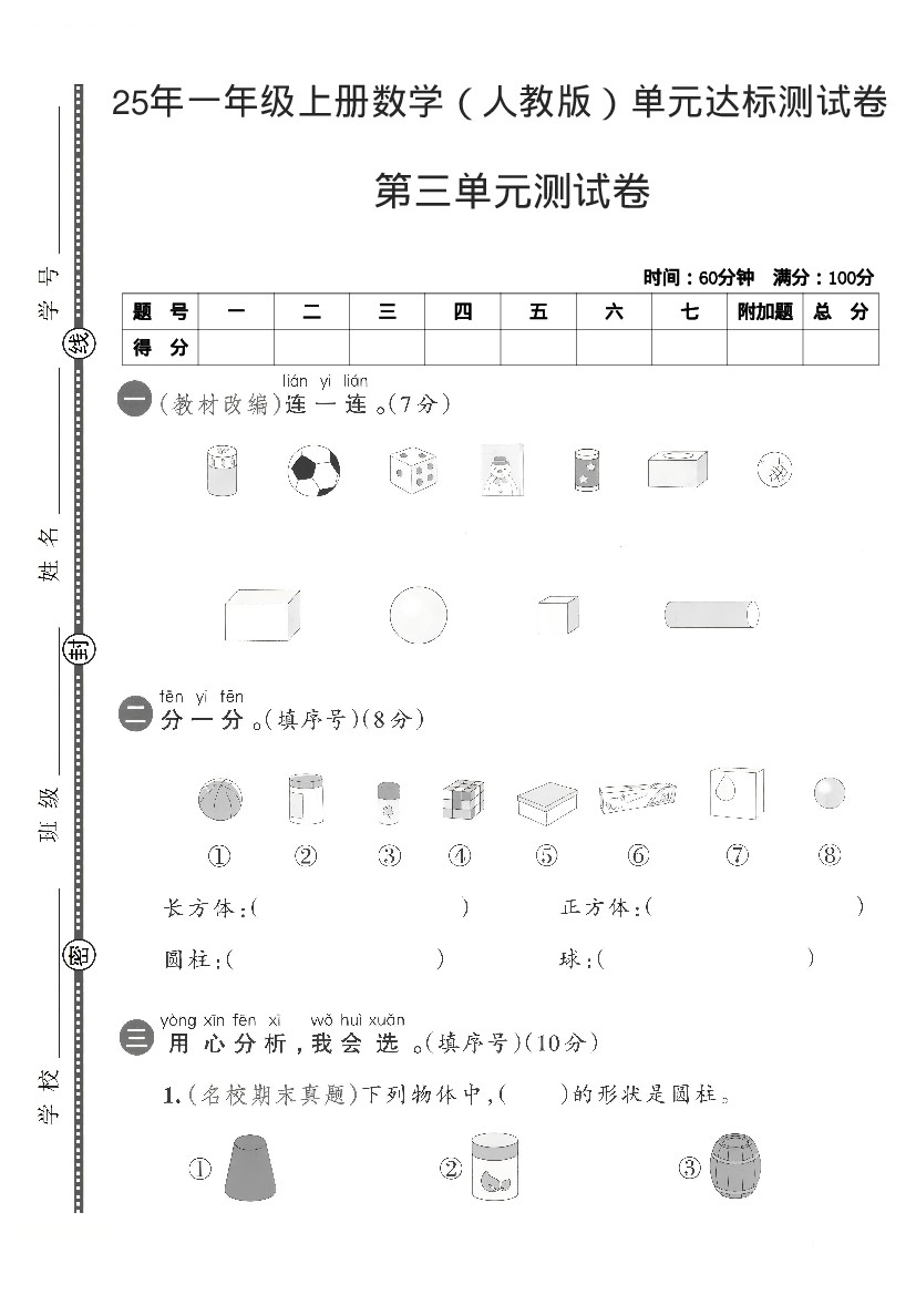 25年一年级上册数学(人教版)第三单元综合素养测试卷