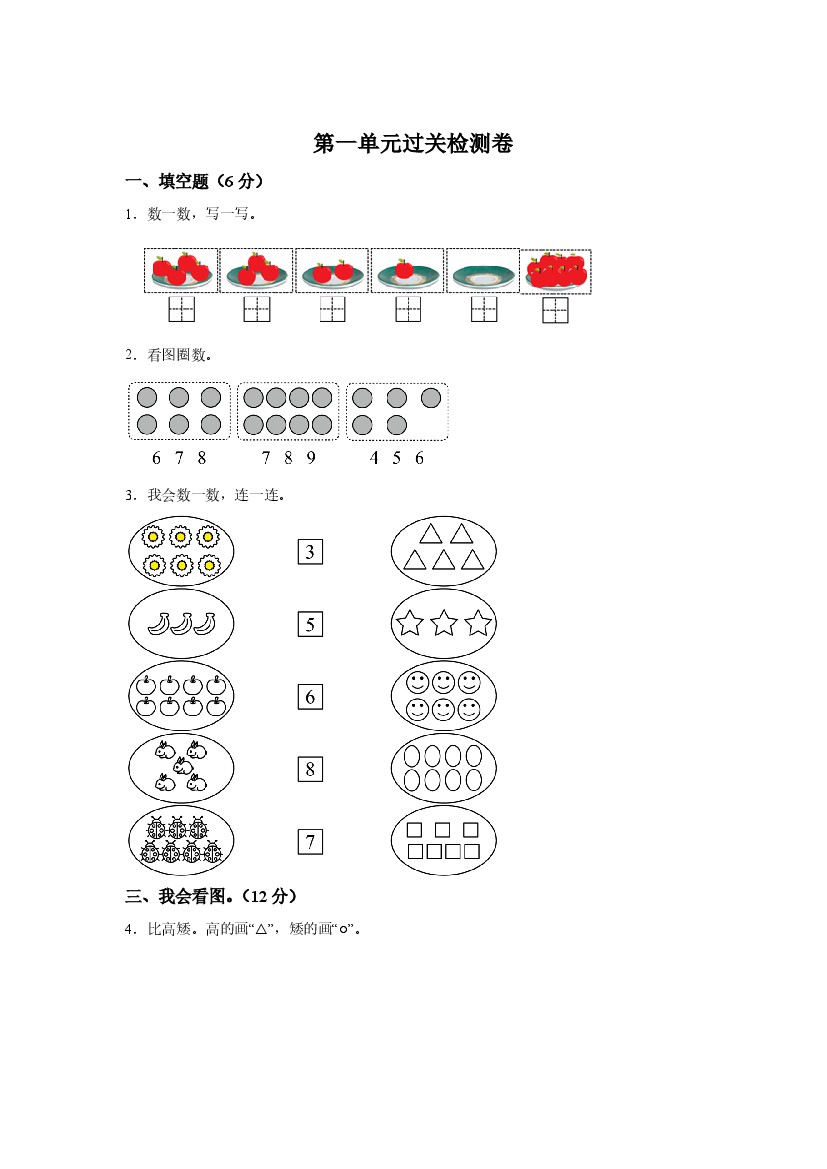 西师大版数学一年级上册第一单元《0~9的认识》单元测试卷(1)