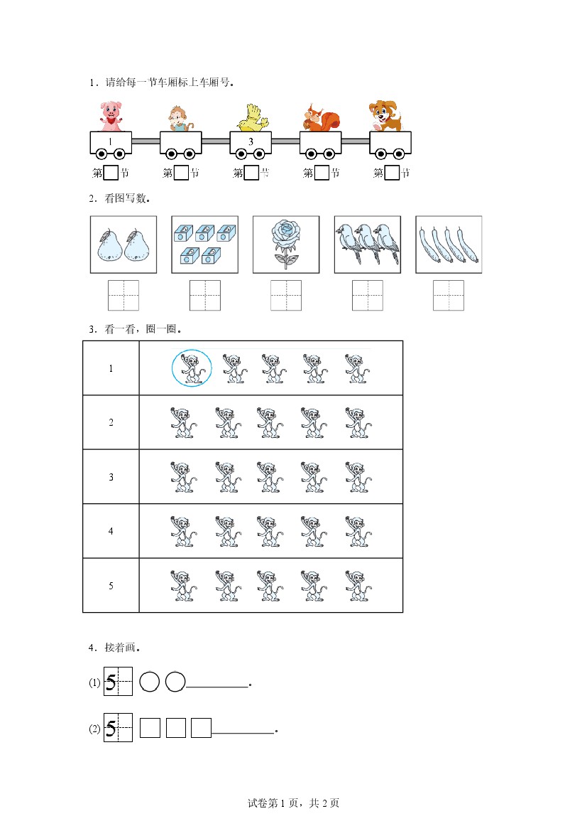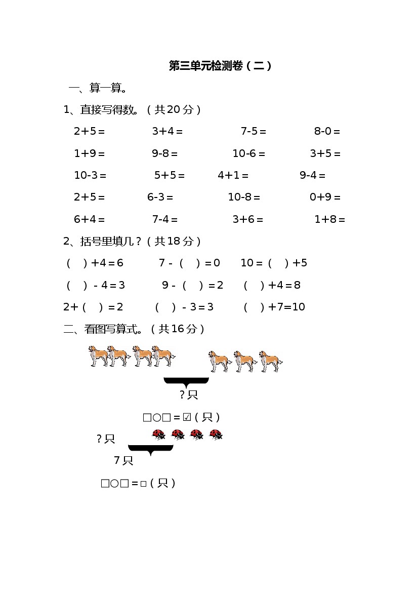 一上数青岛63版1--第1单元测试卷二