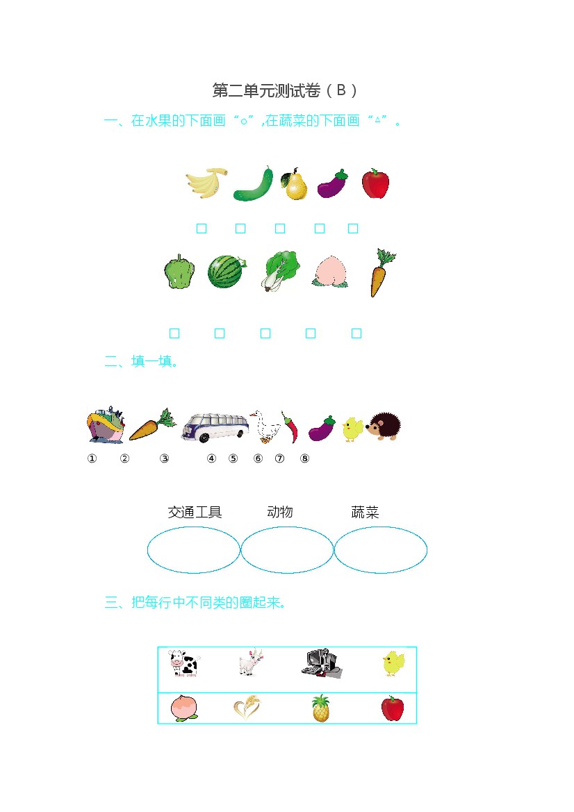 一上数青岛63版6--第单元测试卷