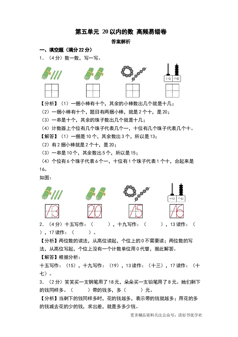 【沪教】一上数学(易错卷)第五单元 20以内的数 高频易错卷-(答案教师)(沪教版)