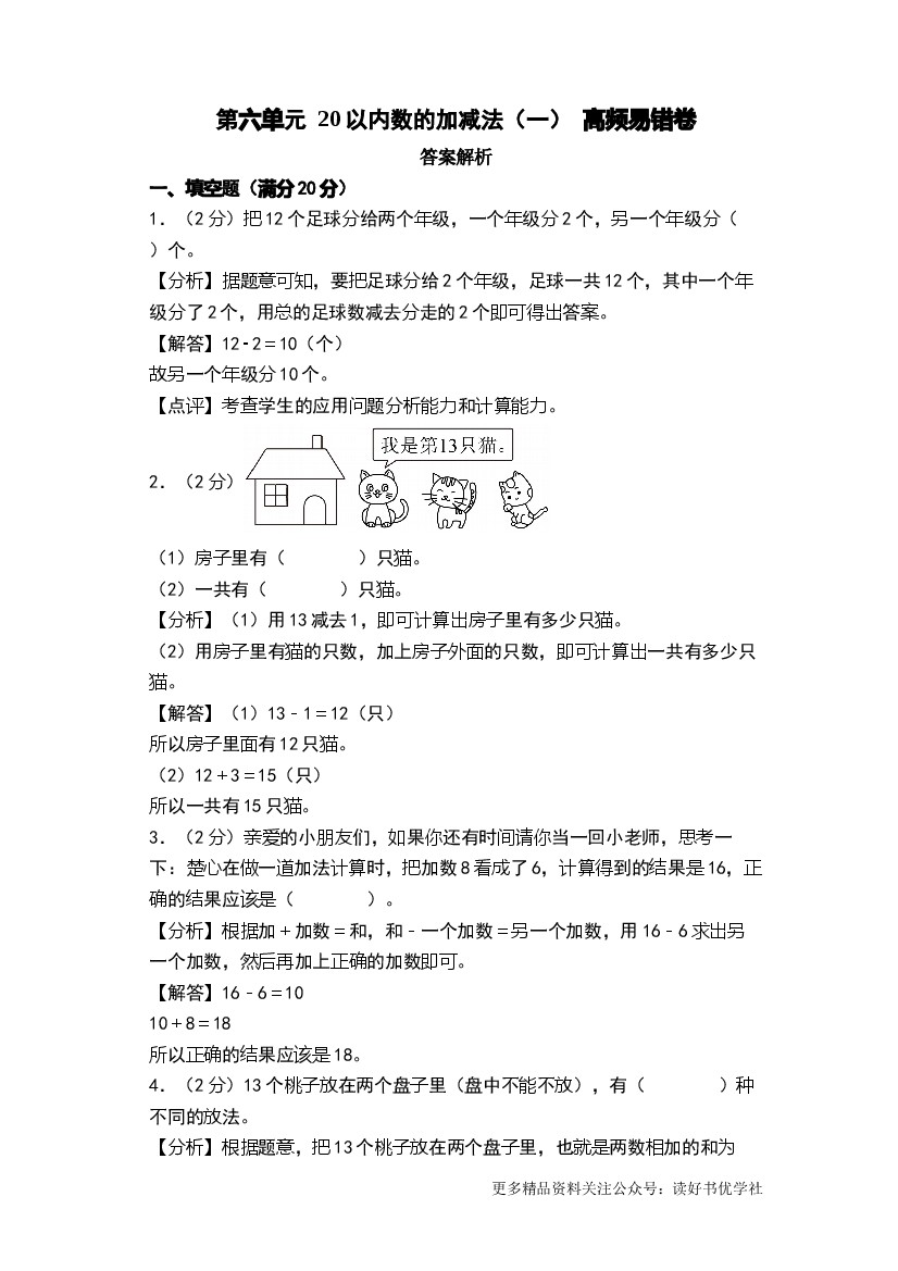 【沪教】一上数学(易错卷)第六单元 20以内数的加减法(一) 高频易错卷-(答案教师)(沪教版)
