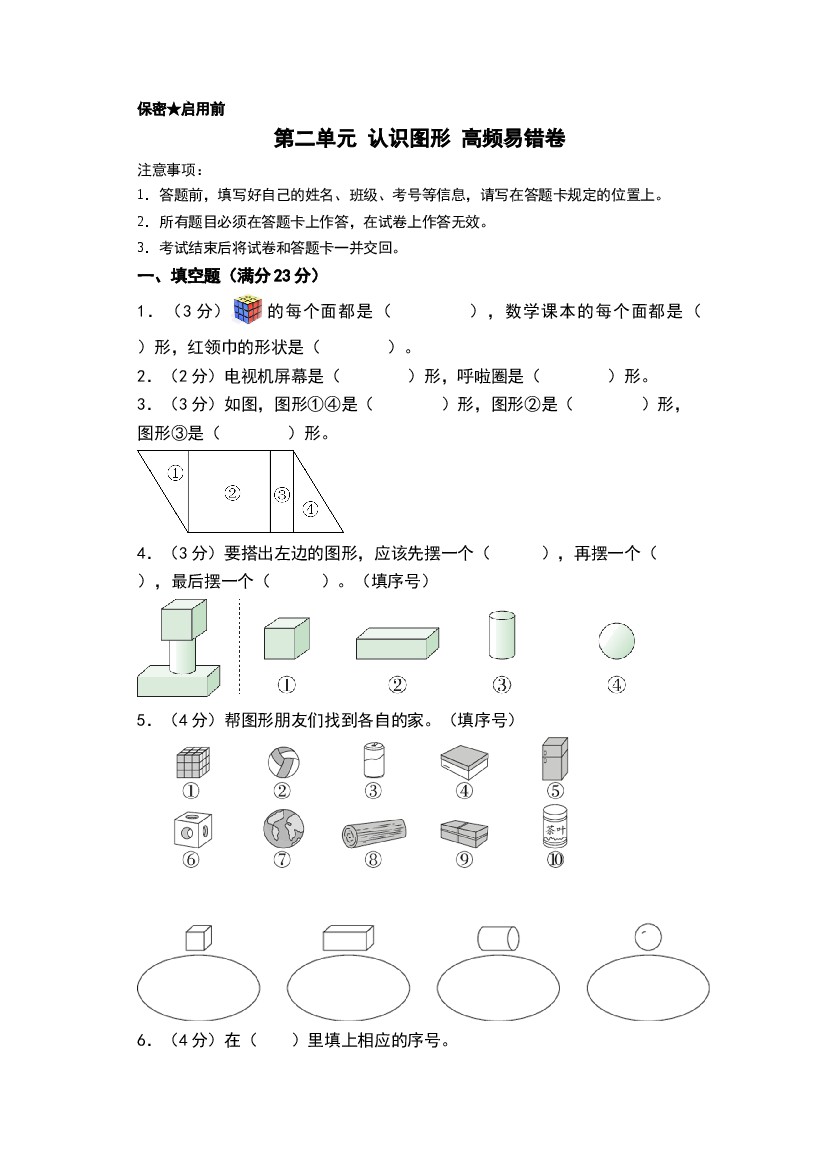 【沪教】一上数学(易错卷)第二单元 认识图形 高频易错卷-(A4版)(沪教版)