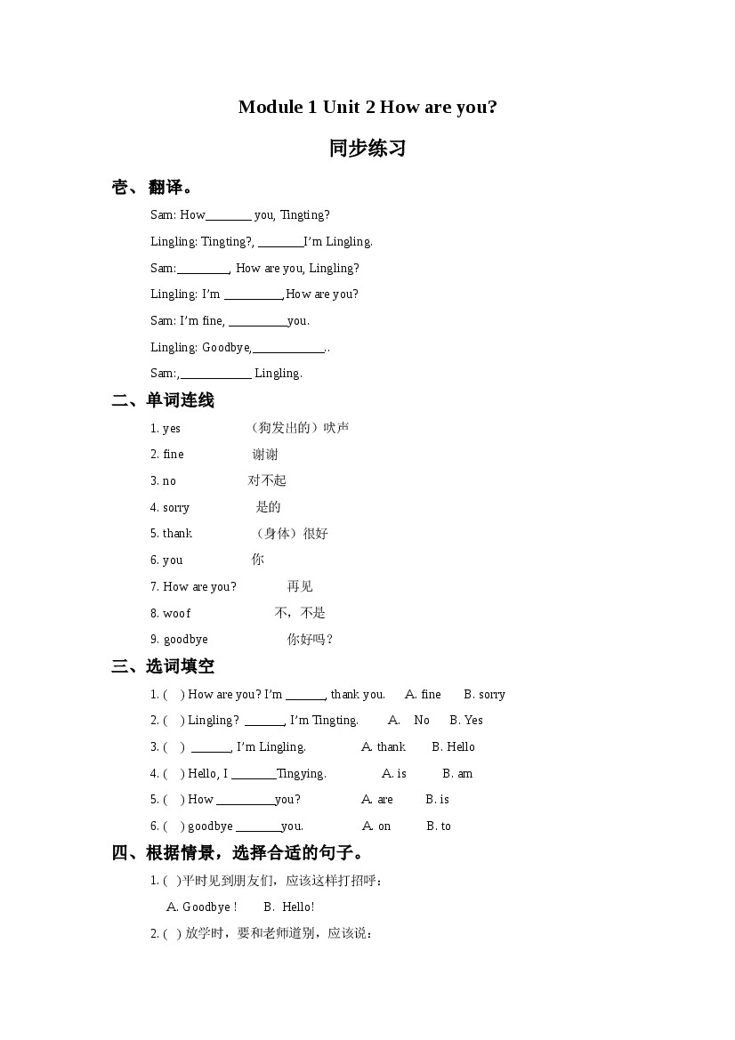 外研一起一上英语Module 1 Unit 2 How are you 同步练习3