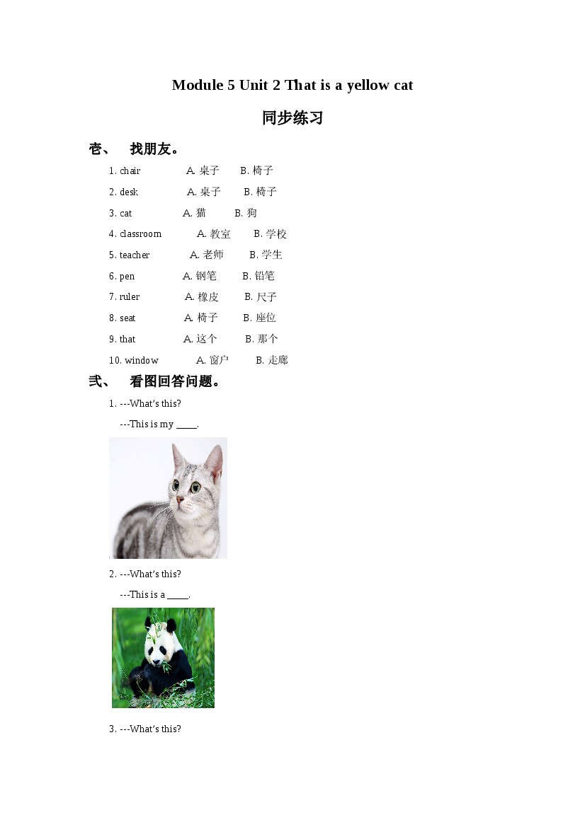 外研一起一上英语Module 5 Unit 2 That is a yellow cat 同步练习3