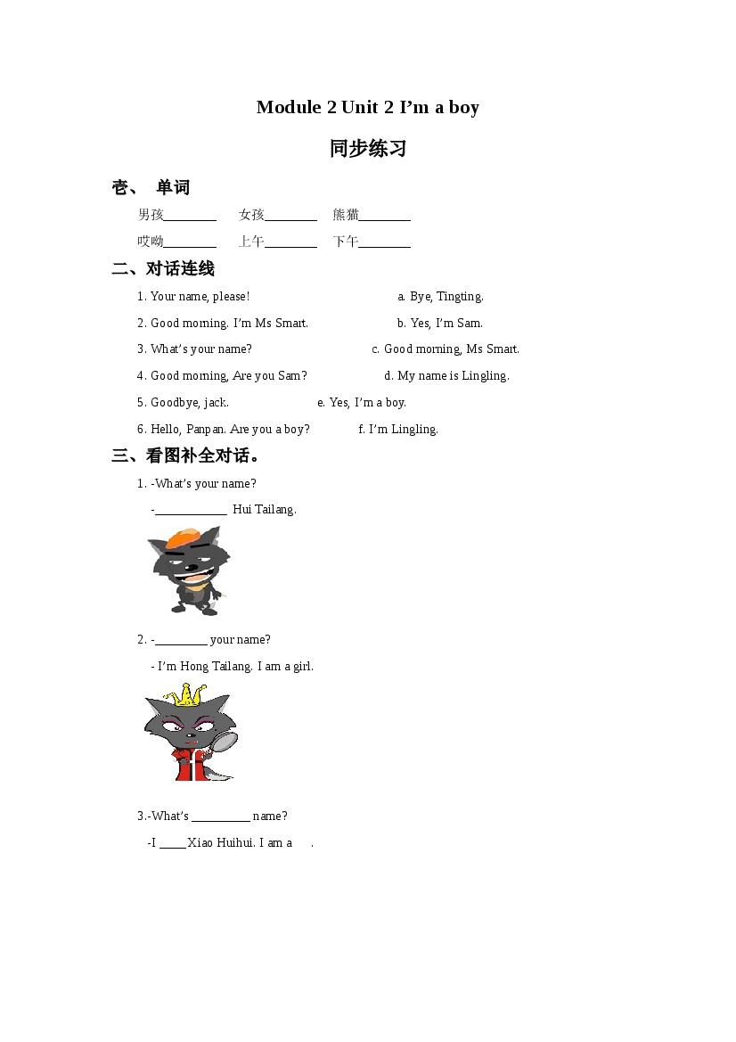 外研一起一上英语Module 2 Unit 2 I’m a boy 同步练习3