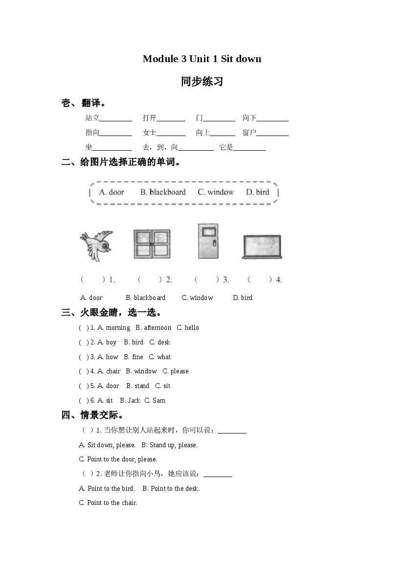 外研一起一上英语Module 3 Unit 1 Sit down 同步练习3