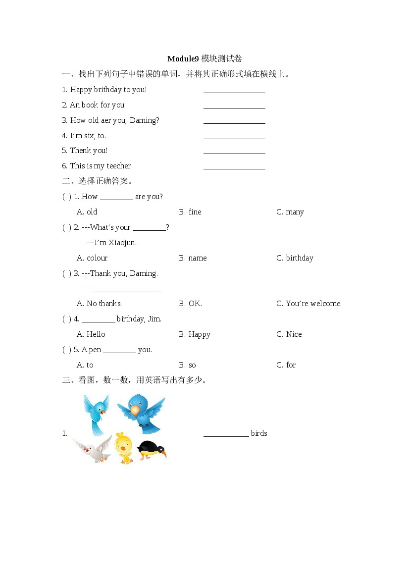 外研一起一上英语Module 9 Unit 2 Happy birthday 同步练习3