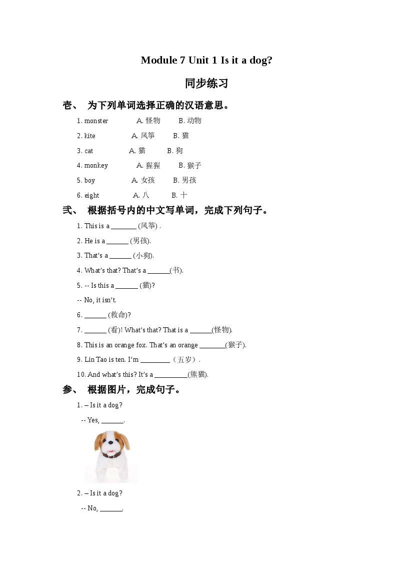 外研一起一上英语Module 7 Unit 1 Is it a dog 同步练习3