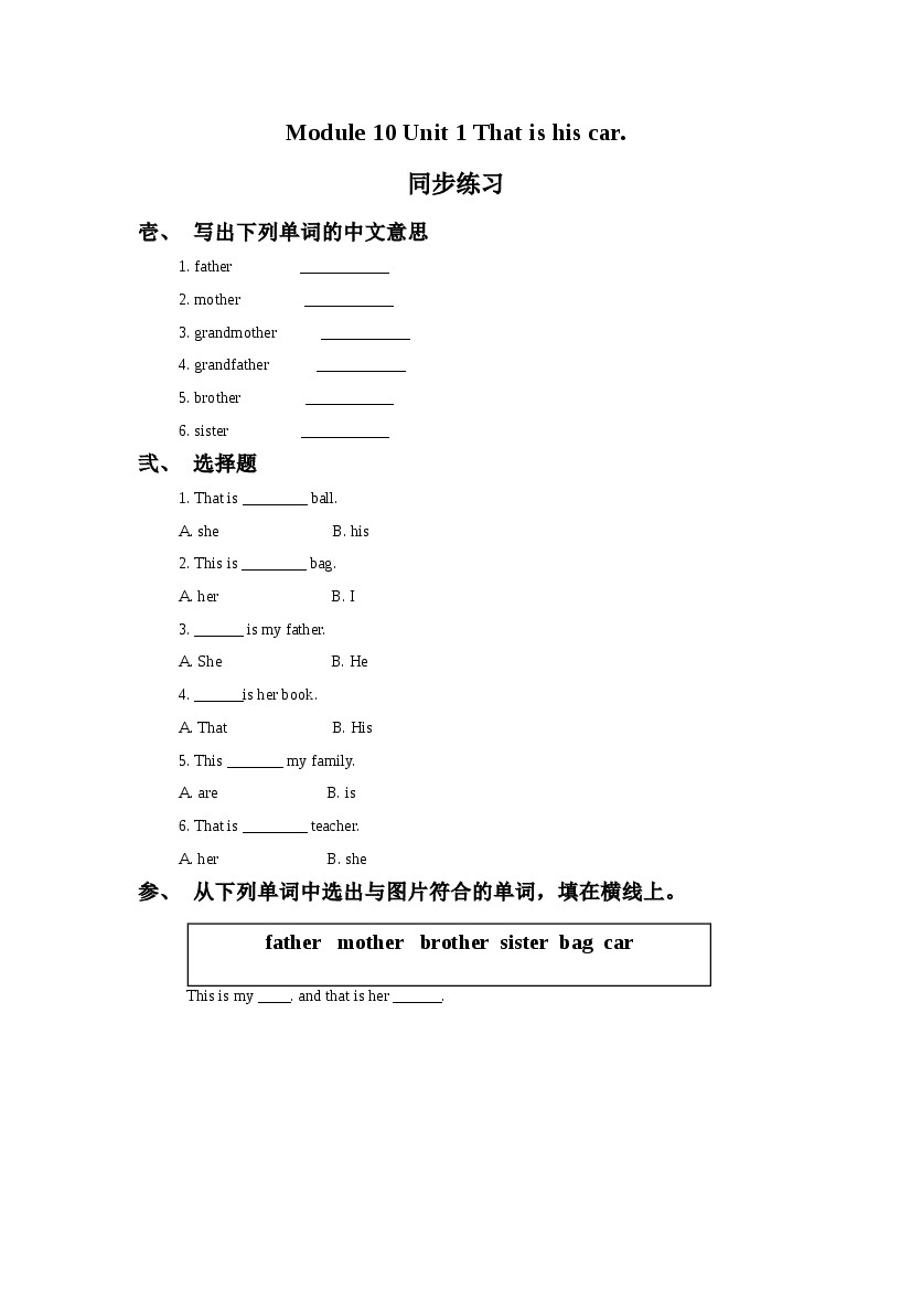 外研一起一上英语Module 10 Unit 2 That is his car 同步练习3