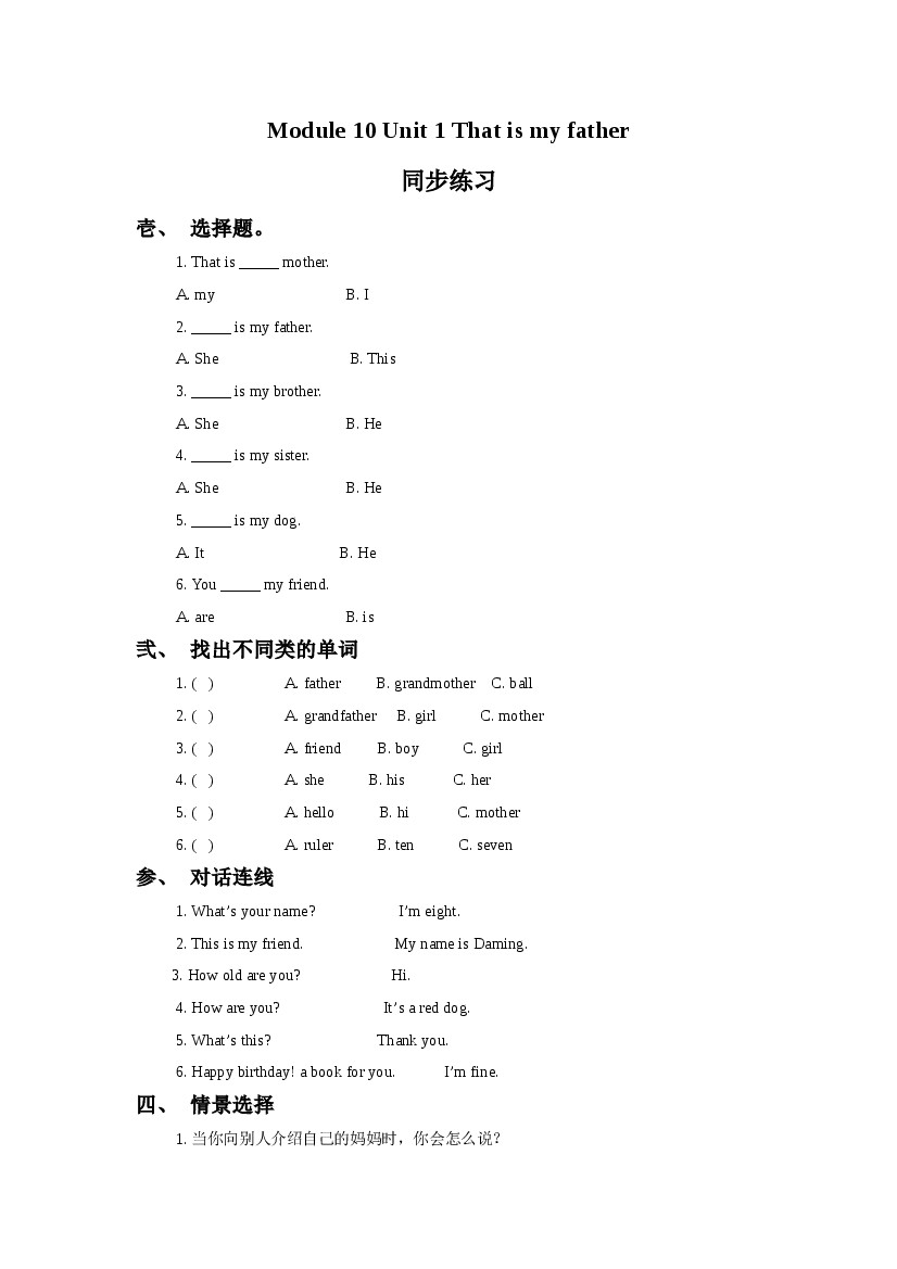 外研一起一上英语Module 10 Unit 1 That is my father 同步练习3