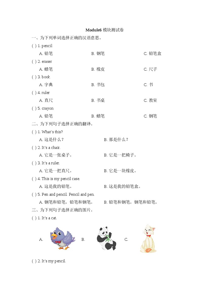 一上英语(外研一版)(05)--Module6_模块测试卷