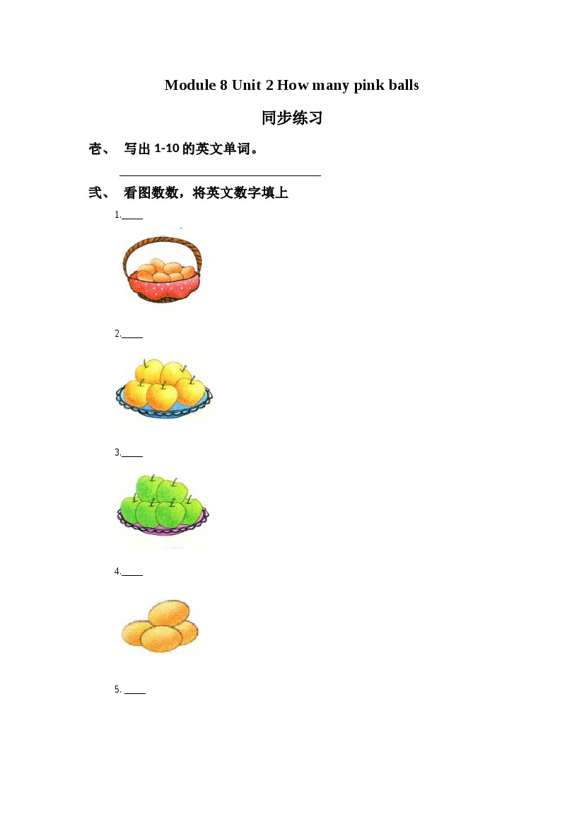 外研一起一上英语Module 8 Unit 2 How many pink balls 同步练习3