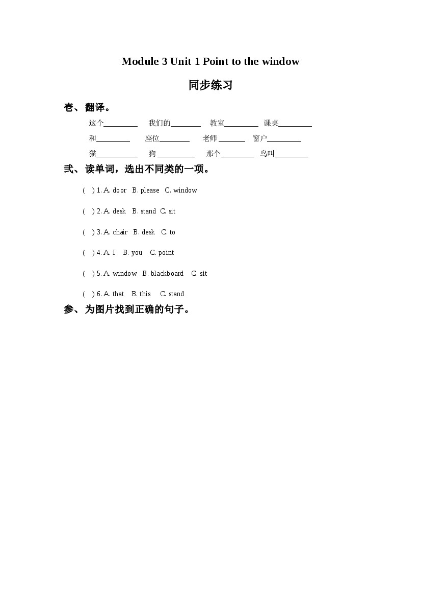 外研一起一上英语Module 3 Unit 2 Point to the window 同步练习3