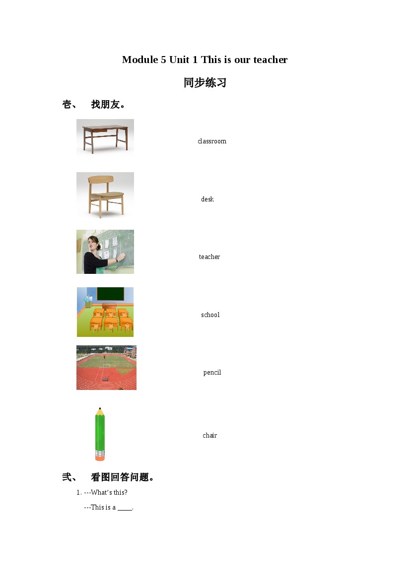 外研一起一上英语Module 5 Unit 1 This is our teacher 同步练习3