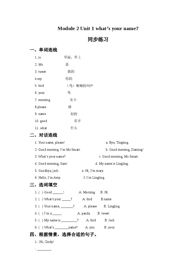 外研一起一上英语Module 2 Unit 1 what’s your name 同步练习3
