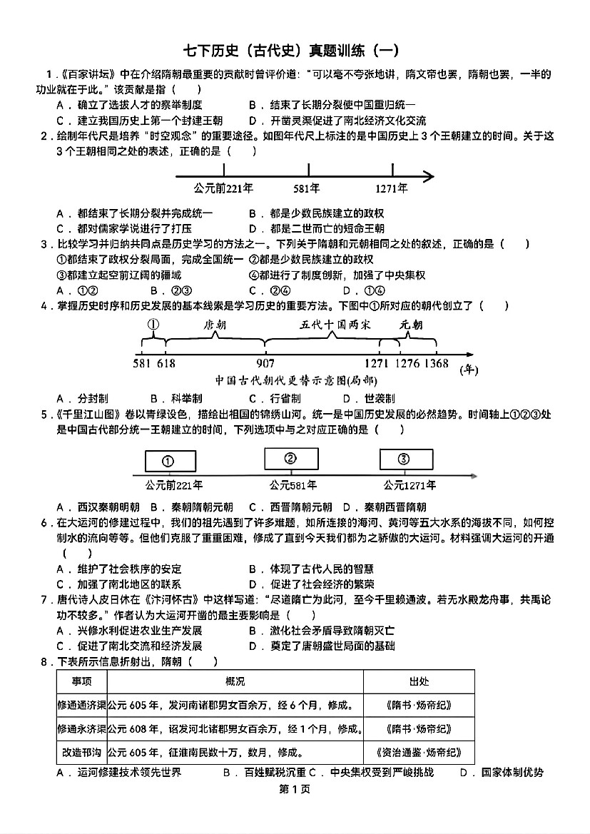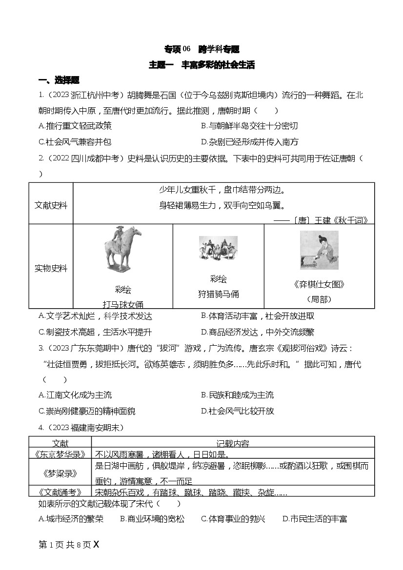2025年七下历史专项练习专项06跨学科专题