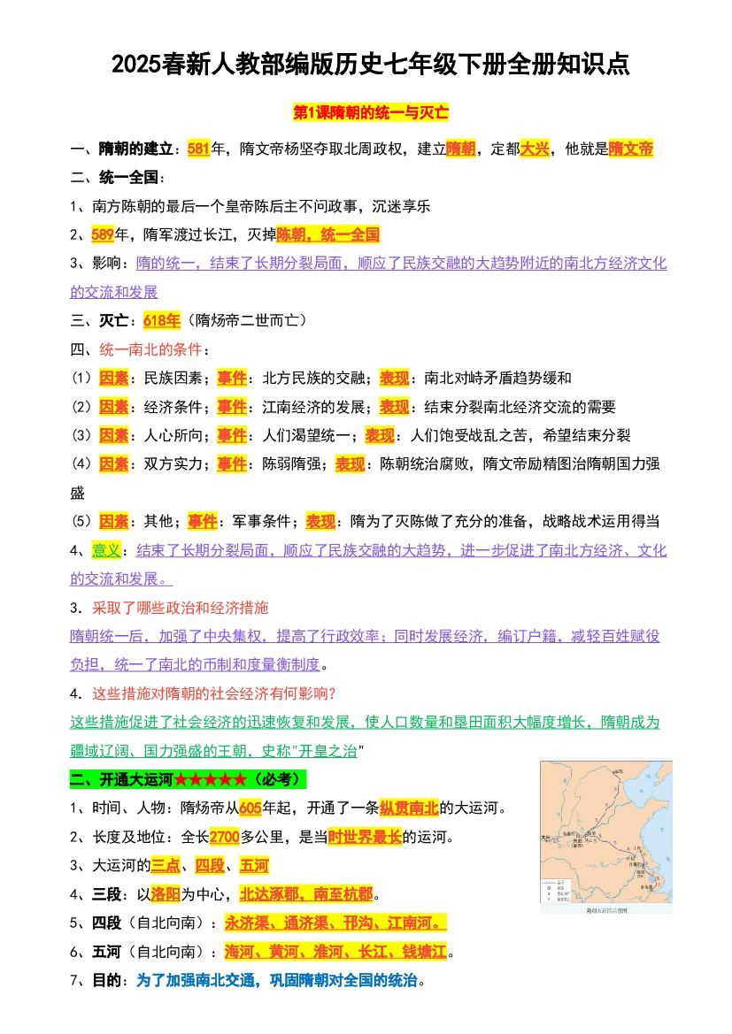 2025春新人教部编版历史七年级下册全册知识点(新)