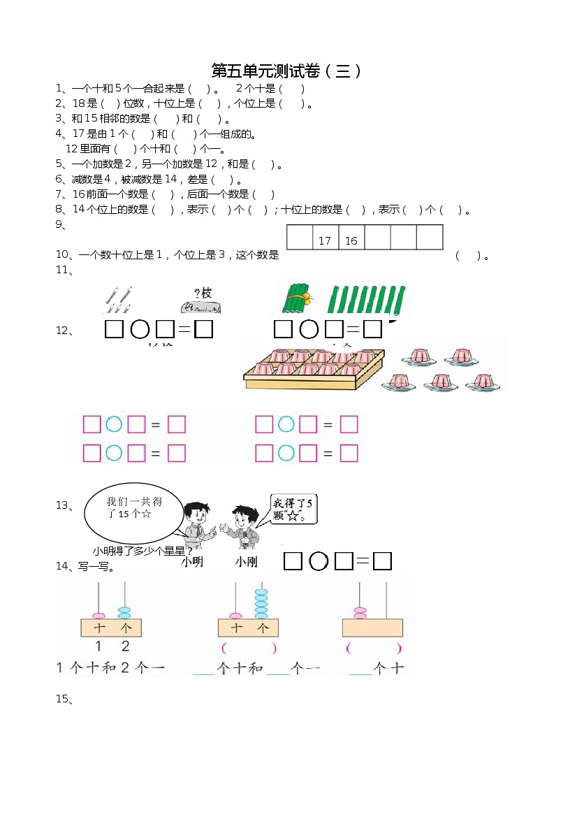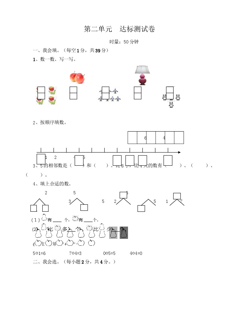 一上数学(西师版)一(上)西师版数学第五单元测试卷