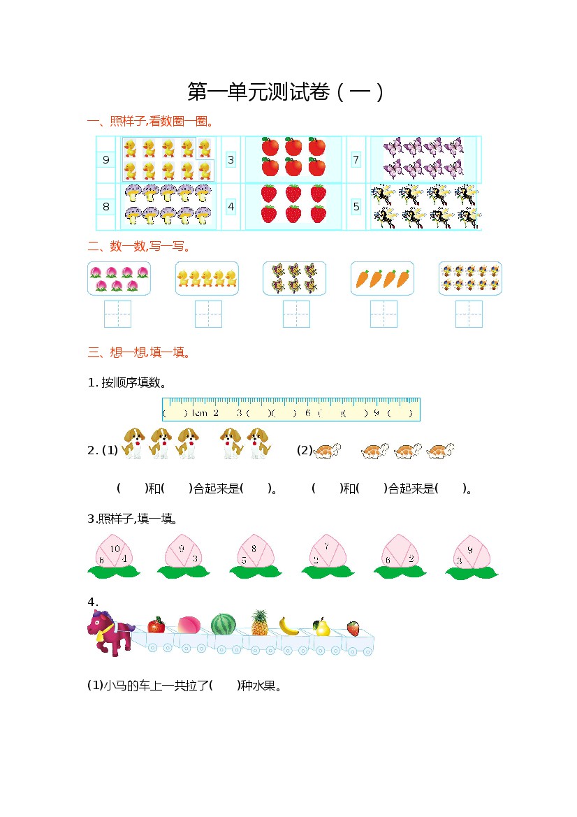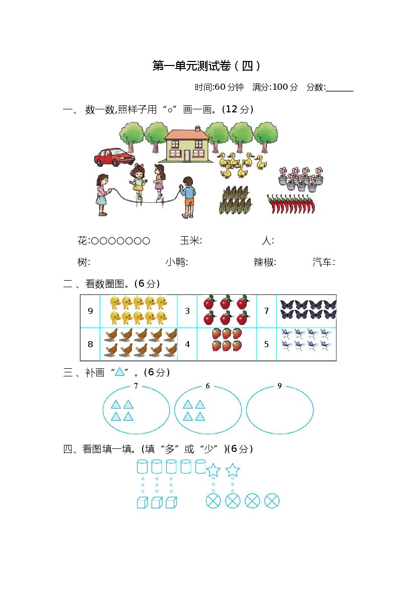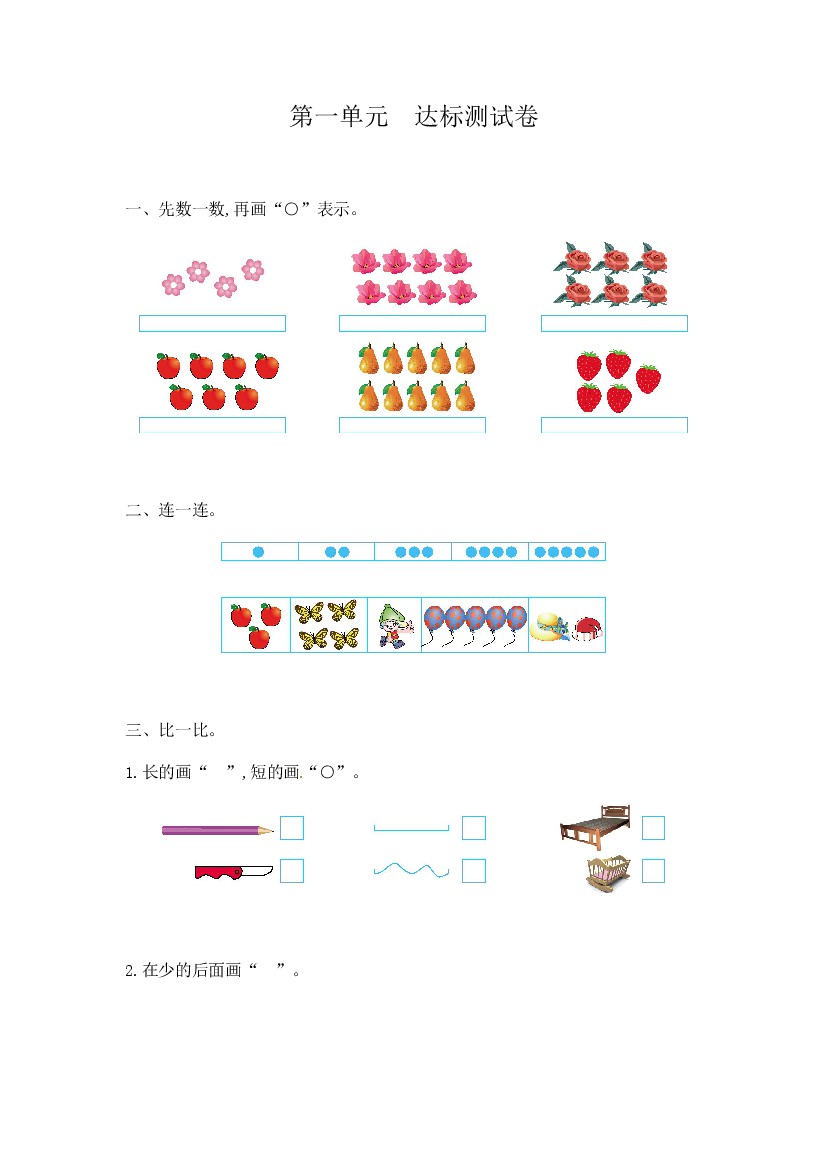 西师大版数学一年级上册第一单元《0~9的认识》单元测试卷(1)