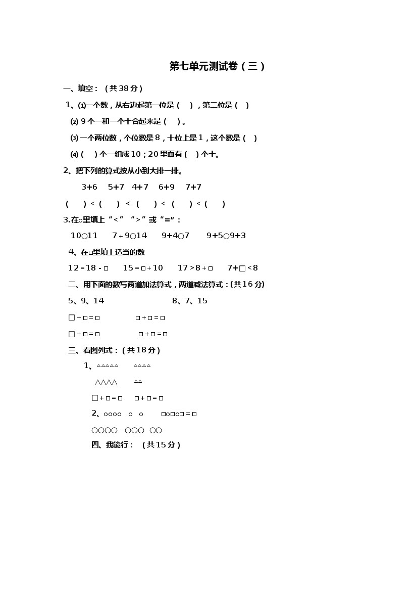 一上数学(西师版){3} - 一(上)西师版数学第一单元测试卷