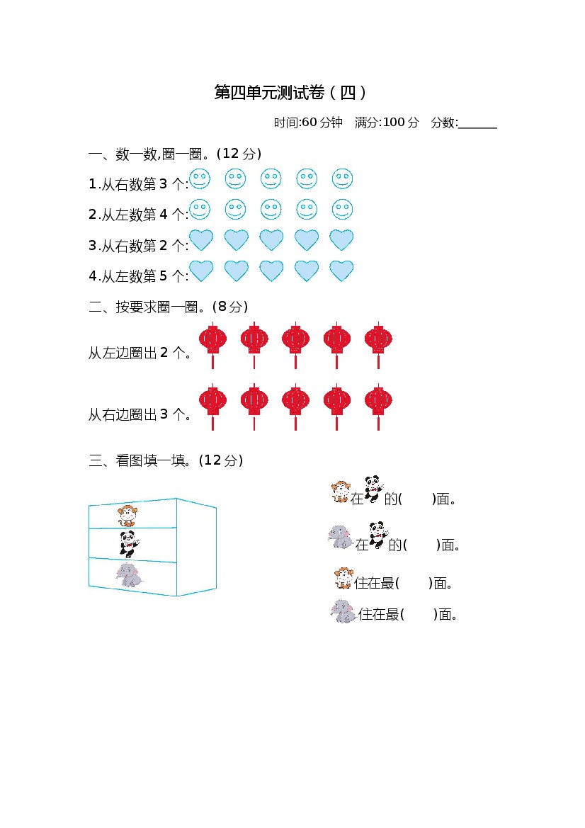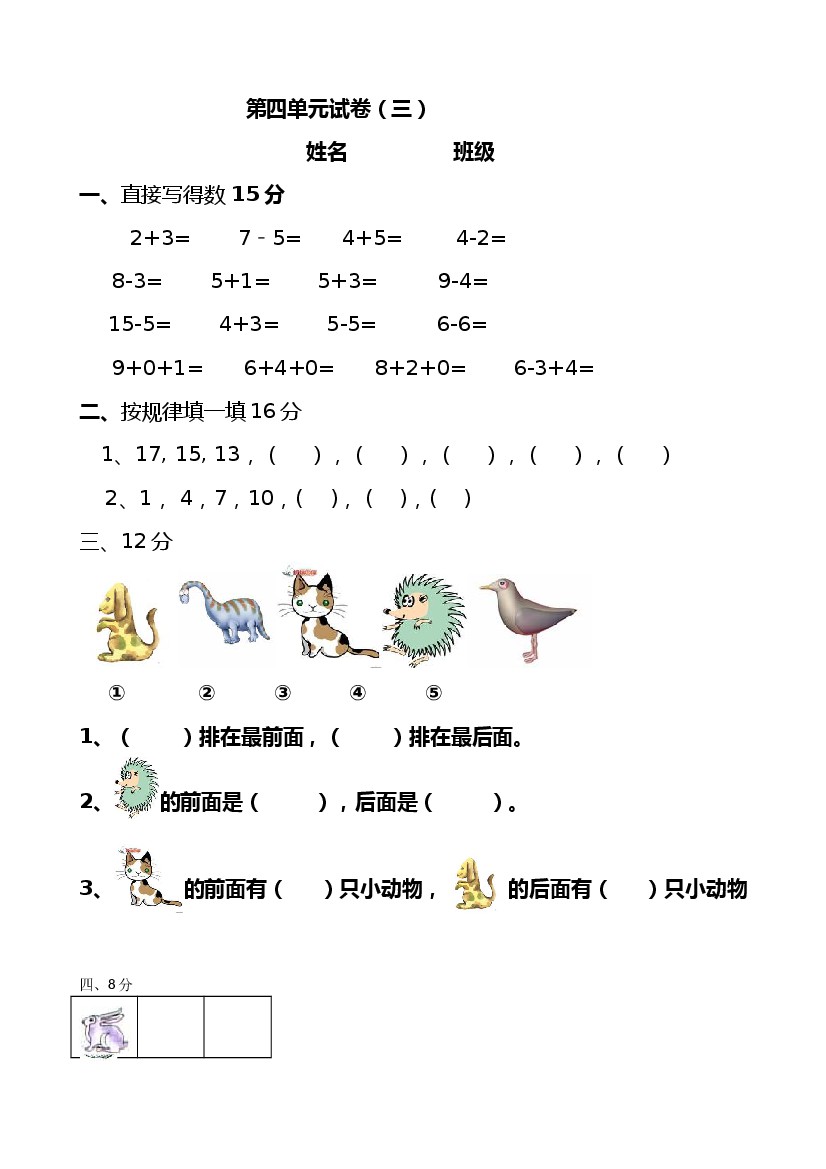 一上数学(西师版)一(上)西师版数学第四单元测试卷