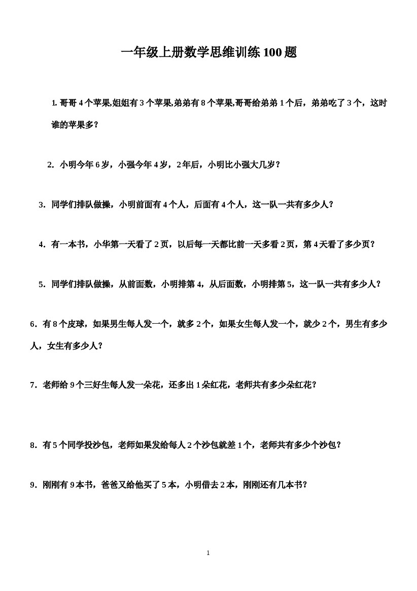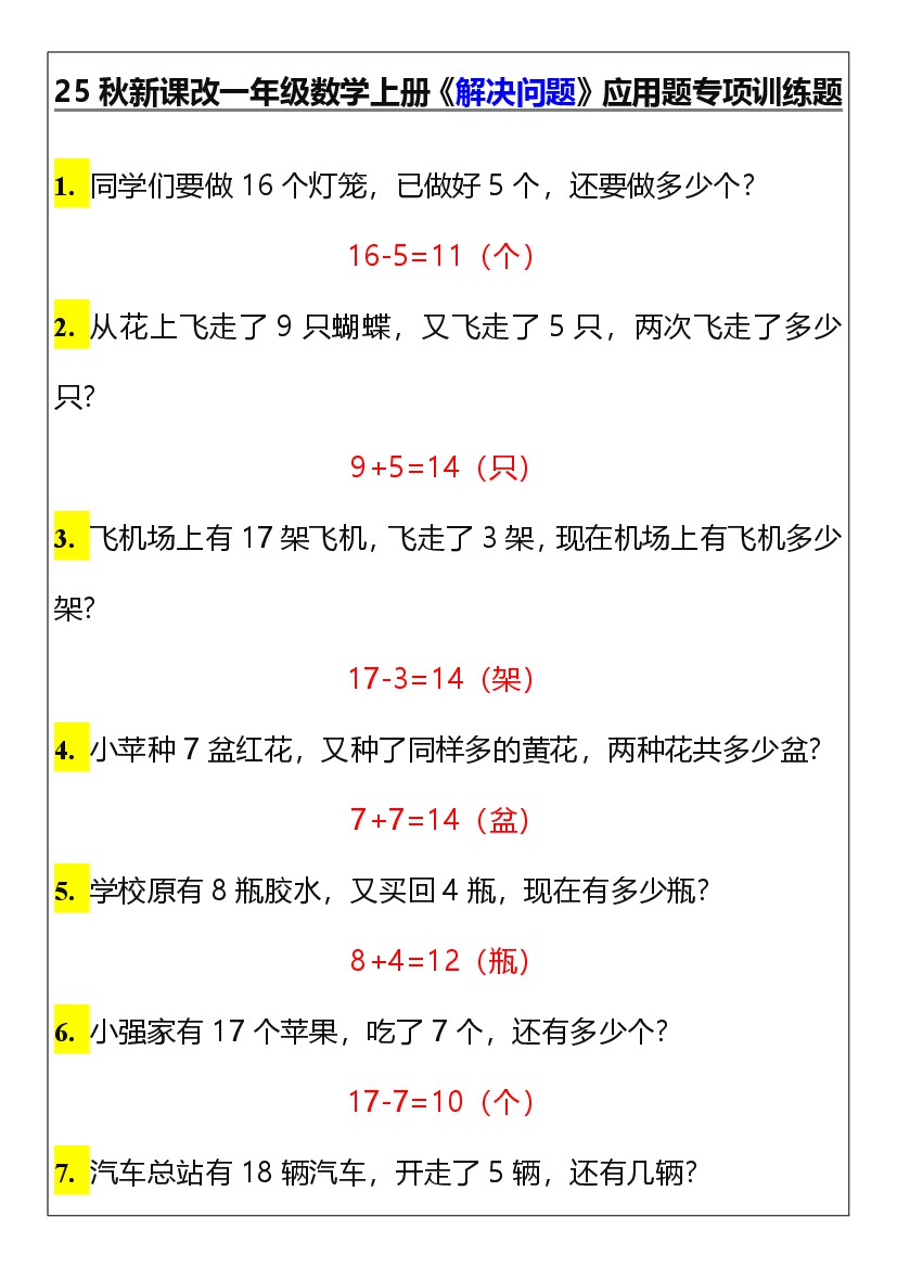 【2025秋新版】一年级数学上册《解决问题》应用题专项训练题