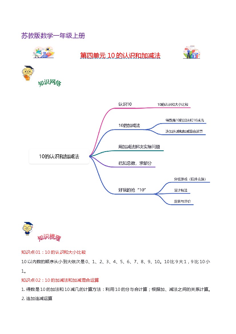 第四单元 10的认识和加减法(知识清单)-(苏教版•2025秋)