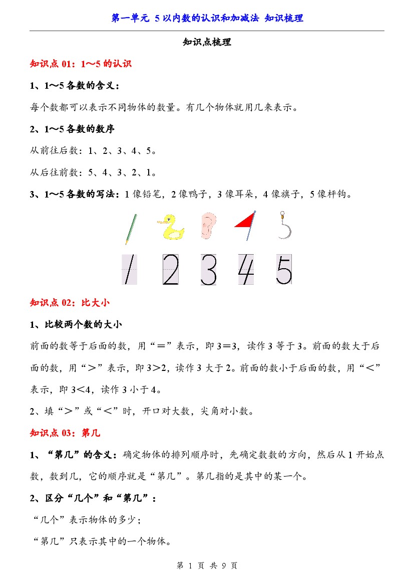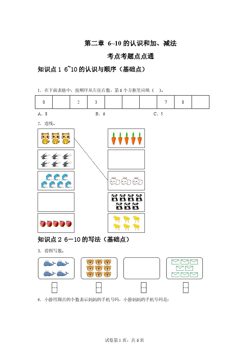 25新一年级数学人教第二章 6~10的认识和加、减法考点考题点点通