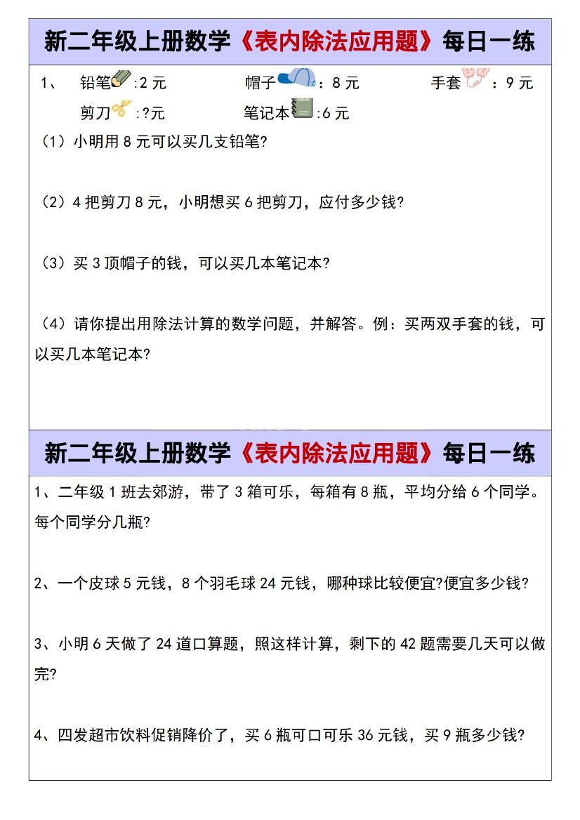 二年级(上)数学 表内除法应用题每日一练