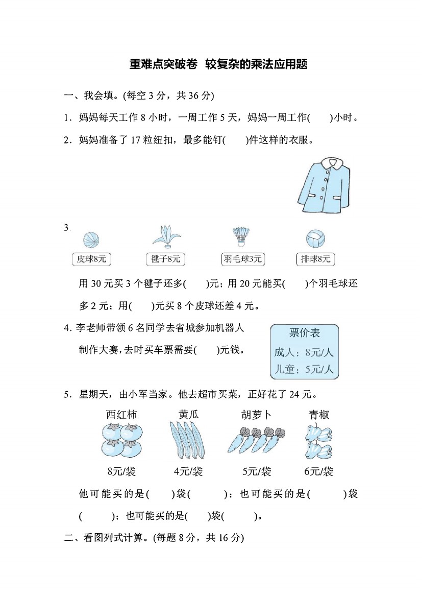 二年级(上)数学 表内乘法常考必考7大典型应用题