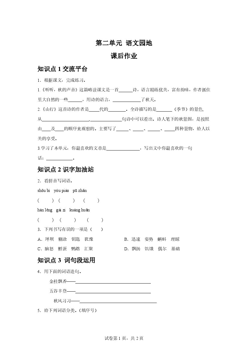 25年秋【三上语文】第5课 铺满金色巴掌的水泥道课前预习